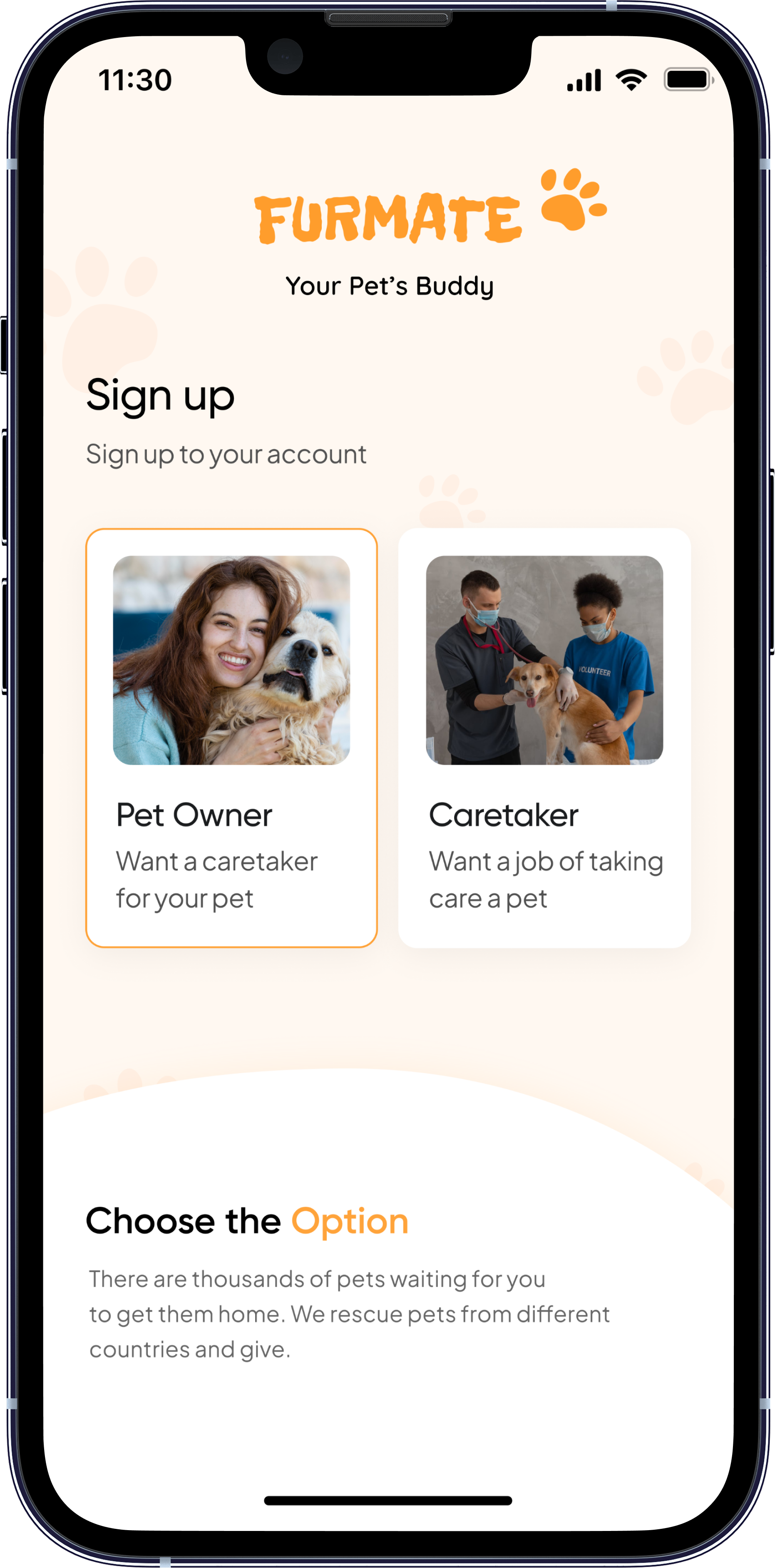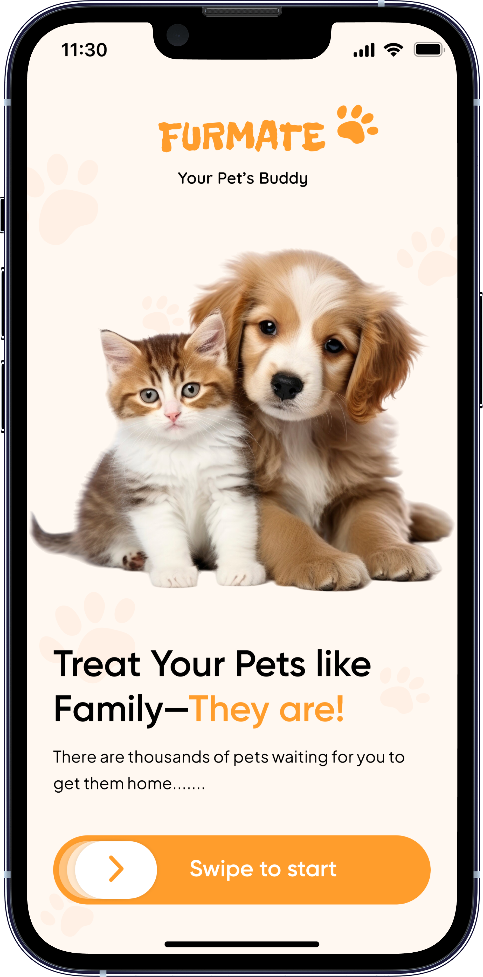 FURMATE is a pet care and service booking mobile application designed to connect pet owners with trusted caretakers, trainers, and groomers. The app simplifies pet management by providing a one-stop platform where users can book services, chat with caretakers, and track appointments — all through an intuitive and friendly interface. It streamlines scheduling, communication, and service updates, so we can focus on what matters most: giving our pets the love and care they deserve